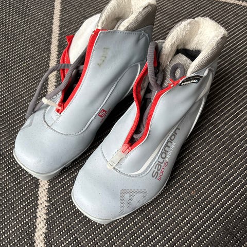 Salomonin hiihtomonot, vuosia vanhat, mutta olleet vähällä käytöllä. Kaikin puolin siistit. Kooksi merkitty lasten koko, mutta itselläni noin koon 37 jalka ja monot istuneet juuri sopivan napakasti.
