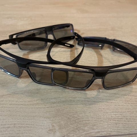 Sony TDG-BR250 3D-lasit. Aktiiviset suljinlasit, väri musta. Kuvissa kaksi paria laseja sekä pehmeä suojapussi. Tarkoitettu yhteensopivien Sony-laitteiden 3D-kuvan katseluun. Säädettävät sangat, paristokäyttöiset. Mallimerkintä näkyy sisäsangassa: TDG-BR250.