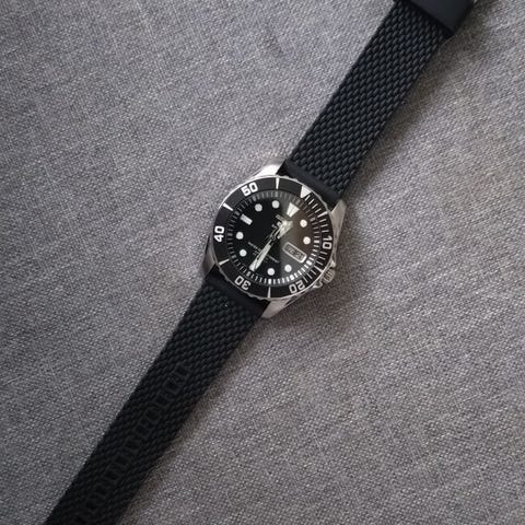 Seiko 5 Sports sarjan musta NATO-ranneke 22mm L0FP02CJ0. Ranneke on valmistettu mustasta nailonista ja solki on hopeanvärinen. Rannekkeen leveys kiinnityskohdasta on 22 mm. Rannekkeen pituus on säädettävissä välillä 16-25 cm. Ranneke on Seiko 5 Sports sarjan alkuperäinen ranneke, joka sopii malleihin: SRPD5XXX, SRPD6XXX, SRPD7XXX, SRPD8XXX. Tämä lisäksi ranneke istuu hienosti myös Seiko SKX malleihin sekä muihin kelloihin, joissa rannekkeen leveys kiinnityskohdasta on 22mm.