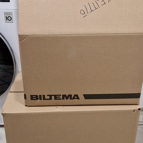 6 kpl Bilteman isoja muuttolaatikoita. Max. 40 kg/75 litraa.