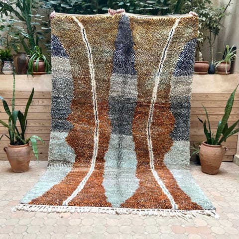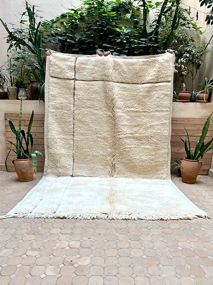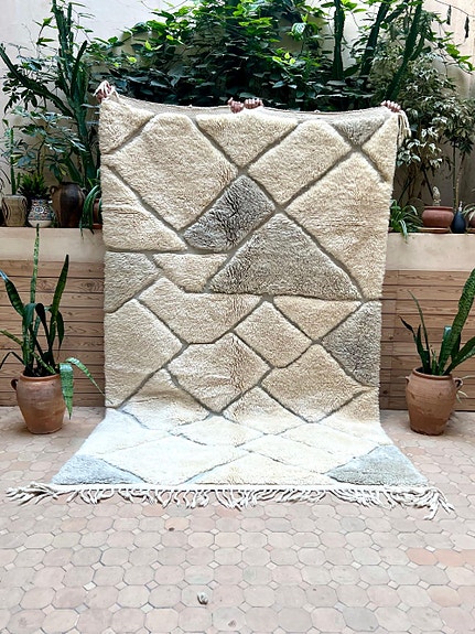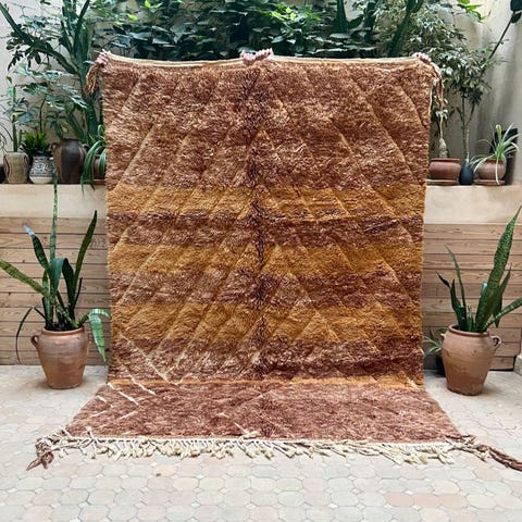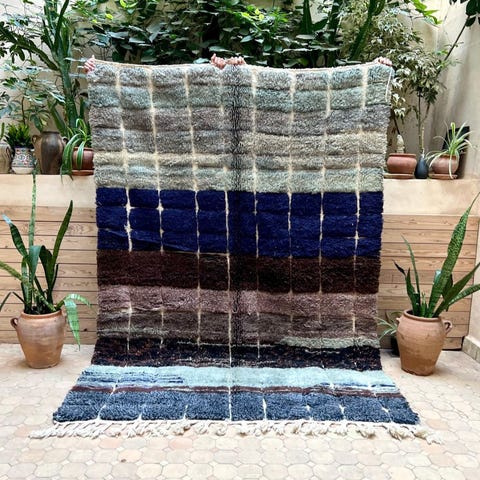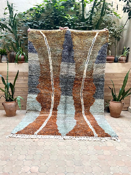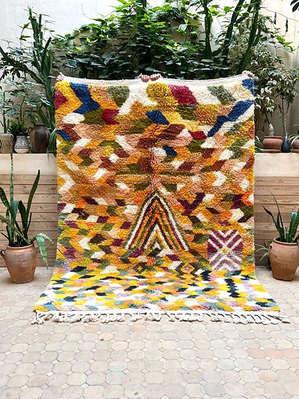 Ihastuttava marokkolainen käsinsolmittu matto. Matto on käyttämätön ja juuri pesty valmistuksen jälkeen. Tämän kun kerran lattialle asettaa, on siitä vaikea luopua. Boujaad on perinteinen berberien matonkutomisalue Marokossa. Perinteisten kuvioiden lisäksi sieltä tulee tänäpäivänä upeita moderneja mattoja, jotka ovat ainutlaatuisia värienkäytön ja käsityön taidonnäytteitä.