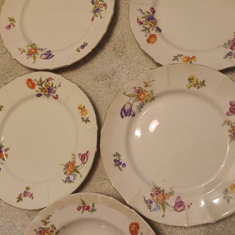 Neljä syvää lautasta, vanhaa Arabiaa.
