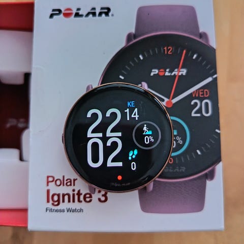 Fitnesskello, jossa on edistyneitä terveys- ja harjoittelutoimintoja. 150+ lajiprofiilia. Integroitu GPS. Sykemittaus ranteessa. AMOLED-kosketusnäyttö. Pitkäkestoinen akku. Unen seuranta. Älykkäät ilmoitukset ja musiikin hallinta. Vaihdettava ranneke. Halkaisija: 43 mm. Paino: 35 g.Polar Ignite 3 on moderni multisportkello, joka antaa kehosi ja elämäntyylisi mukaan räätälöityä opastusta. Seuraa kaikkea aktiivisuuttasi, seuraa untasi ja näe sinulle tärkeimmät terveystiedot. Aloita räätälöidyillä treenisehdotuksilla ja reaaliaikaisella ääniopastuksella. Näet merkitykselliset mittarit kauniilla, korkearesoluutioisella kosketusnäytöllä.Tärkeimmät ominaisuudet:- Pitkäkestoinen akku- Ääniopastus- Yli 150 lajiprofiilia- AMOLED-kosketusnäyttö- Kaksikaistainen GPS ja optinen sykeseuranta- Valitse ja mukauta mitä tietoja haluat nähdä kellotaulussasiAMOLED-KOSKETUSNÄYTTÖKorkea resoluutio rikkaampaan ja eloisampaan värikokemukseen. Gorillalasi ja kaareva linssi. Navigoi helposti kosketusnäytöllä ja yhdellä painikkeella.AKUNKESTOJopa 30 tunnin akunkesto harjoitteluun GPS:llä ja sykeseurannalla (ja jopa 100 tuntia virransäästötilassa). Jopa 5 vuorokautta kellotilassa 24/7 sykemittauksella.- ÄäniopastusÄänipalaute Polar Flow'n kautta harjoituksen aikana. Keskity meneillään olevaan aktiviteettiisi, nauti musiikista ja hanki asiaankuuluvia tietoja tarkistamatta näyttöä.KAKSIKAISTAINEN GPS JA OPTINEN SYKEMITTAUSKaksikaistainen GPS mittaa etäisyytesi mahdollisimman tarkasti. Polar Precision Prime -sykkeenmittaus 10 LEDillä ja 4 valonilmaisimella mittaa tarkasti ranteesta.MUKAUTETTAVAT WIDGETIT NOPEAAN KÄYTTÖÖNValitse ja mukauta kellotauluissa näkyviä tietoja, jotta voit käyttää useimmin käyttämiäsi ominaisuuksia nopeasti.UNEN SEURANTASaat herätessäsi täydellisen analyysin kehosi palautumisesta yön aikana ja näet energiatasosi tulevalle päivälle.PÄIVITTÄISET HARJOITUSEHDOTUKSET JA 150+ LAJIPROFIILIAValitse valmiista harjoituksista, jotka on mukautettu kuntoosi, tai valitse haluamasi urheilulaji tai aktiviteetti ja hanki työkalut, joita tarvitset sen seuraamiseen.SAAT TÄYDELLISEN YLEISKUVAN ENERGIASTASITarkista päivän aikana polttamiesi kalorien kokonaismäärä ja katso rasvan, proteiinin ja hiilihydraattien prosenttiosuus, jonka kulutit harjoituksen aikana.PÄIVITTÄINEN AKTIIVISUUDEN SEURANTAPäivän jokainen askel on tärkeä. Ignite 3 tunnistaa automaattisesti jokaisen liikkeen, ja voit pyrkiä saavuttamaan päivittäisen aktiivisuustavoitteesi.TÄRKEÄT ÄLYKELLO-OMINAISUUDETPysy yhteydessä älykello-ominaisuuksien, kuten musiikin hallinnan, sään ja puhelimen hälytysten avulla, jotka pitävät sinut yhteydessä.Tuotetiedot:- Käyttö: Urheilu, vapaa-aika- Käyttäjäryhmä: Aikuiset, unisex- Materiaali: Lasikuituvahvisteinen polymeerikotelo, ruostumaton teräs- Mitat: 43 x 43 x 9,5 mm- Akun kesto: Jopa 30 tunnin akunkesto harjoitteluun GPS:llä ja sykeseurannalla (ja jopa 100 tuntia virransäästötilassa), jopa 5 päivää kellotilassa 24/7 sykeseurannalla- GPS: Kyllä, GPS Dual-Band- Näyttö: AMOLED- Kosketusnäyttö: Kyllä - Koko, näyttö: 1,28"Resoluutio: 416 x 416- Vedenkestävyys: 30 m (sopii uimiseen)- Akku: Li-Pol, ladattava akku USB-latauksella- Akkukapasiteetti: 220 mAh- Yhteys: Bluetooth BLE- ANT+: Ei - Lajiprofiilit: Yli 150 profiilia- Paino: 35 grammaa hihnan kanssa