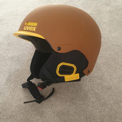 Pari vuotta käytössä ollut Uvex saksalainen laskettelukypärä. Niskakiristys, sisäkankaat ehjät.