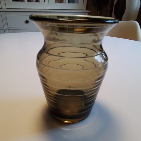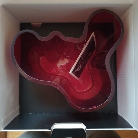 Uusi sininen vaasi laatikossa, leimat ja tarrat tallella.