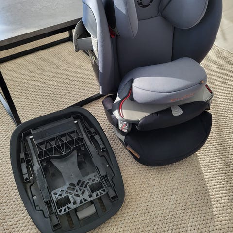 Yhdellä lapsella käytössä ollut Cybexin turvavyöistuin. Solution X-Fix. Tarrojen mukaan valmistettu 2022.