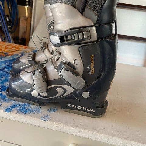 Salomonin laskettelumonot, koko 25–25.5 (pohjan pituus 295 mm). Käytön jälkiä, mutta edelleen täysin toimivat.