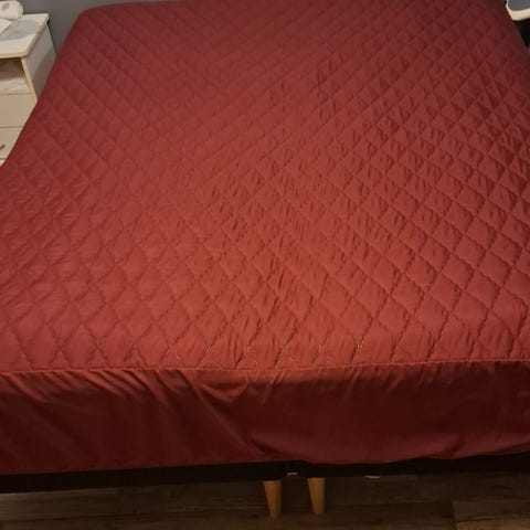 Hobby hallista ostettu päiväpeitto, tyynynpäällinen muualta. Ohutta kangasta. Yhteishintaan.