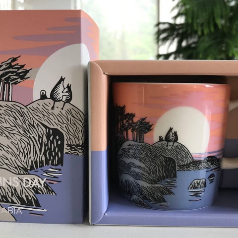 Täysin käyttämätön, laatikossa pidetty, tarrallinen 2018 vuoden muuminpäivä- muki.