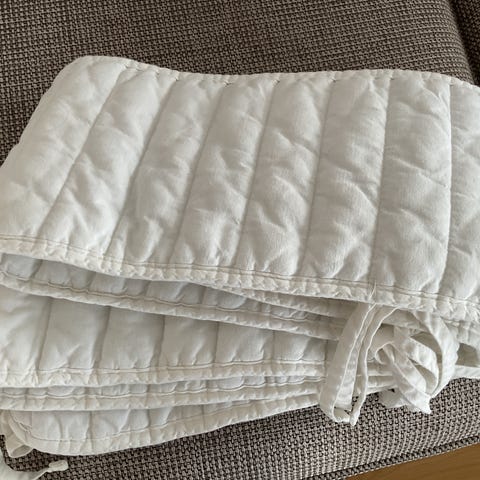 Alvi pinnasängyn puolipehmuste - tarkoitettu pinnasängyn toiseen päätyyn, ja molemmat reunat peittyy puoliväliin. 100% puuvilla päällinen, vanulevyä sisällä. Sidotaan kiinni nauhoilla.