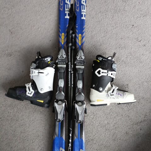 Head Laskettelusukset 145cm ja Nordica Laskettelumonot koko 24,0/24,5 olleet 37 kokoisessa jalassa.
