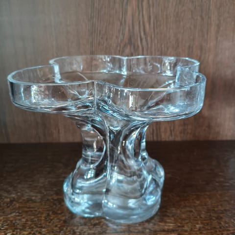 Riihimäen lasin valmistama, Helena Tynellin suunnittelema Onnenlehti-maljakko.