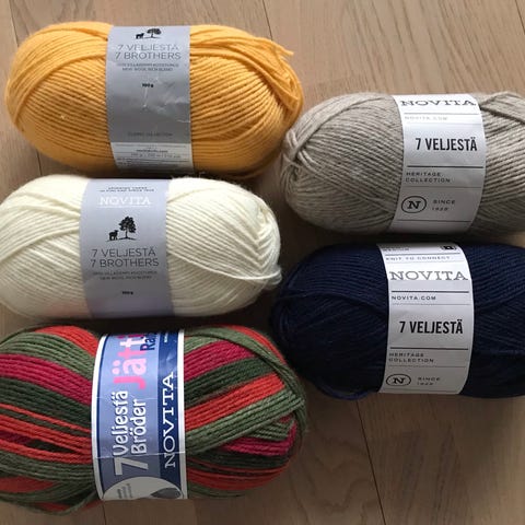 Novita 7 Veljestä -lanka, kerän koko 150 g. Täysiä keriä.
