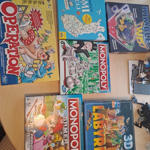 Myydään puinen lautapelisetti, jossa monta eri peliä. Mukana laudat, kaikki pelinappulat ja ohjeet. Tämä ei ole meillä päässyt käyttöön kun pelejä on muuten paljon. Nouto tai postitus Tori-diilin kautta.
