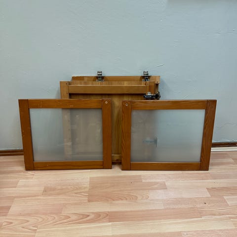 Oven Korkeus 140cm, yhden oven leveys n.49cm eli ovet sopivat hyllykköön, jossa on metrin levyiset hyllyt.