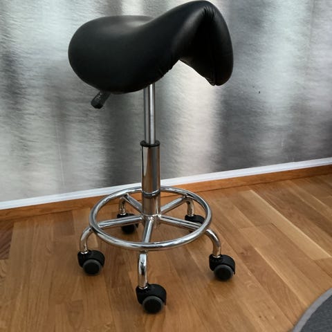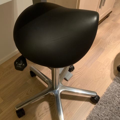 Todella hyväkuntoinen satulatuoli. Musta nahkainen istuin. Korkeutta voi säätää.