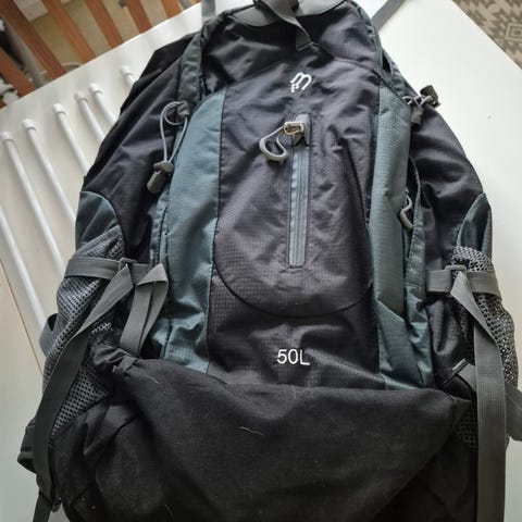 Lasten rinkka 45l. North sky merkkinen. Parilla partio retkellä ollut. Kaikki kiinnikkeet, vetoketjut ja pehmusteet ehjiä. Sisältää sadesuojan jota ei ole koskaan käytetty. Runsaasti taskuja ja hihnoja joilla pikku retkeilijä pärjää varmasti.
