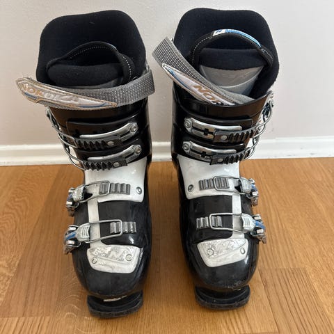 Nordica laskettelumonot mustat. Monossa neljä metallisolkea ja tarrakiristys varressa. Pohjassa vaihdettavat kantapalat ja kärkipalat. Tarkempi koko: 27.5. Vastaa kengänkokoa:43.