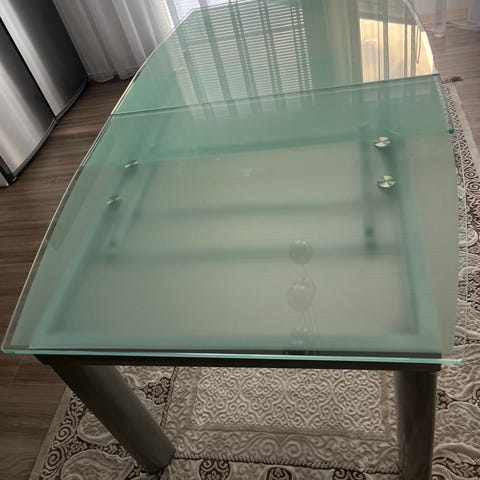 Jatkettava lasipöytä
