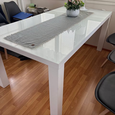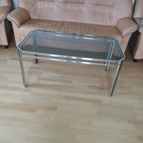 Hyväkuntoinen jatkettava 4 hengen lasipöytä. Mitat 120×80.