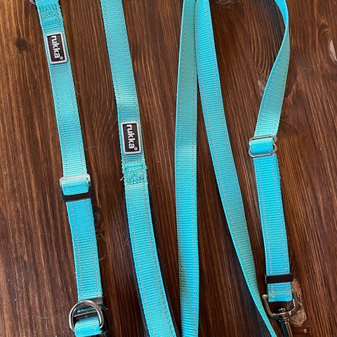 Myydään turkoosi Rukka Bliss Polar -talutushihna ja panta. Hihnan mitat 1 cm x 1-2 m, säädettävä pituus. Hihnassa pehmustettu käsilenkki ja pistoolilukko. Pannan mitat 1,5 cm x 20-30, säädettävä pituus. Pannan kiinnityksen saa lukittua paikoilleen, joten se ei pääse vahingossa avautumaan. Loistavia nopeasti kasvavalle pennulle :)