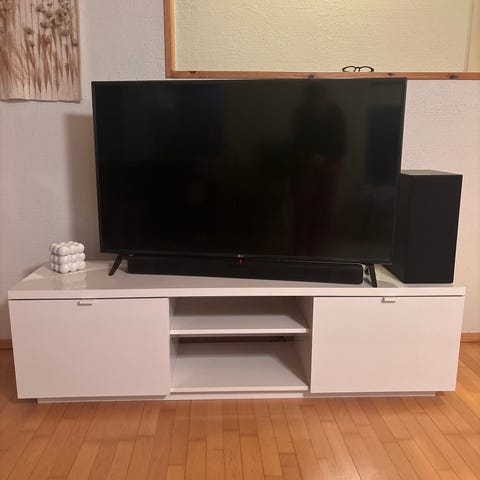 Hieno musta tv-taso. Pieniä käytön jälkiä, mutta yleisilmeeltään kuitenkin siisti.