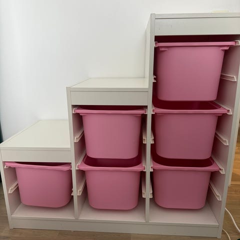 IKEA lasten säilytyslaatikot muovia, väreinä punainen ja vaaleanpunainen. Laatikot sopivat esimerkiksi lelujen, kirjojen tai vaatteiden säilytykseen lastenhuoneessa. Muovinen materiaali on helppo pyyhkiä puhtaaksi ja laatikoita voi käyttää hyllyissä, kaapeissa tai lattialla erillisinä säilytyslaatikoina. Leveys 30 cm, syvyys 23 cm, pituus 42 cm. Vain nouto. 3 e kpl
