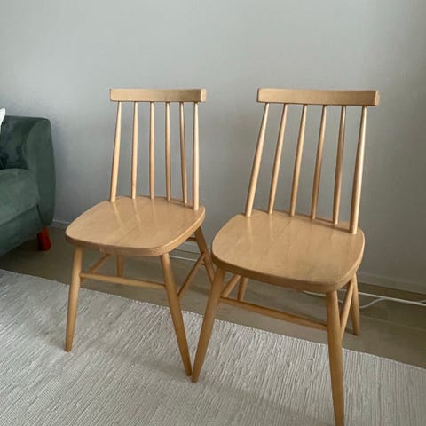 Puiset pinnatuolit 2 kpl,on tosi vanhat joten käytönjälkeä löytyy. On Silti tukevat ja hyvät. Yhdessä tai erikseen. Hinta yht. Ei merkkiä ainakaan näkyvillä