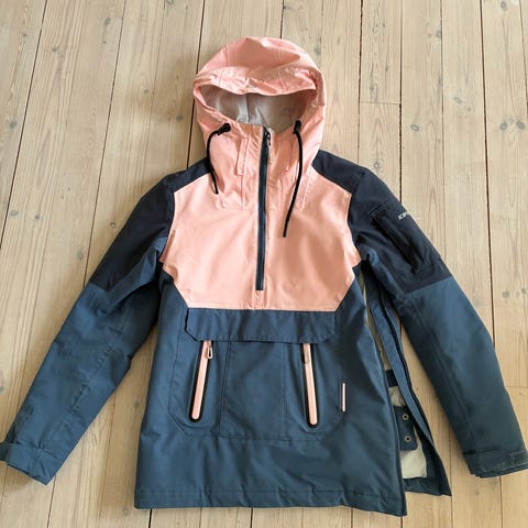 - siinä on paljon yksityiskohtia. Toinen sivu aukenee kokonaan. Merkki on Nimbus . Koko S . Pieni huomaamaton läikkä oikealla puolella ( katso kuva) yhdessä taskussa on hiihtolipulle erillinen tasku. Käy hyvin laskettelua kuoritakkina. Takin pituus on 70 cm olkapäistä ja pituus kainalosta kainaloon 51 cm