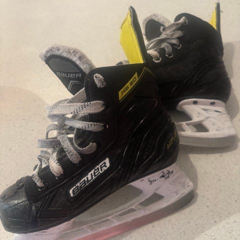 Bauerin luistimet, ei lue kokoa mutta käytetty 30 kokoisessa jalassa. Mukaan villapohjalliset. Kuluneemmat jo kärjestä, vasta teroitettu.