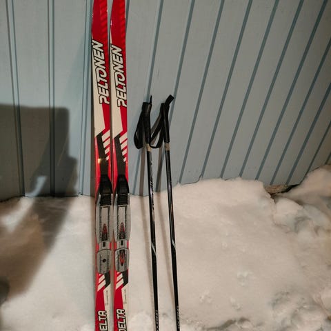Atomic maastohiihtosukset NNN-siteillä. Pohjissa naarmuja, mutta hyvin on vielä pystynyt hiihtämään.