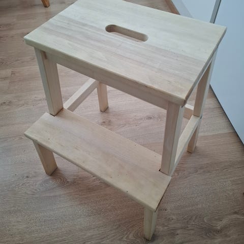 Kotikulta Ivalo -porrasjakkara. Jakkarassa on kaksi askelmaa. Bambusta valmistetun porrasjakkaran koko on 43 x 43 x 46,5 cm. Kantavuus enintään 120 kg.