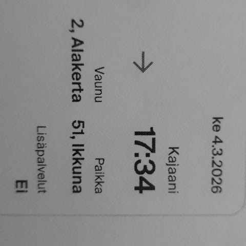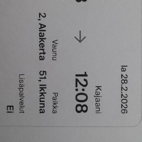 Kajaani-Oulu junalippu to 26.2.2026