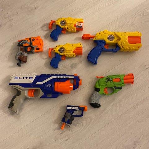 Xshot aseita 7kpl ja vaahtomuoviammuksia jonkin verran. Kaikki muut paitsi kaksi ovat kuin uusia.