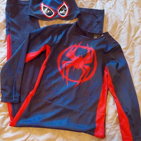 Aikuisten/nuoren spider-man haalari. Ostettu vintedistä, käytin penkkareissa. Alkuperäisesti todennäköisesti jostain kiinahalpakaupasta. Haalari repesi vetoketjun alta ja ompelin sen parhaani mukaan, mutta tilalle jäi 4. kuvan kuoppa, ei näy kuitenkaan pahasti käytössä. Pieniä valkoisia tahroja toisessa hihassa, väri osittain haalistunut/kadonnut ja vetoketju ei ole mikään kauheen hyvälaatuinen. Myös hupun silmät eivät ole kauhean hyvälaatuiset. Muuten oikein mukava oloasu tai naamiaisiin. Fleece tyylistä pehmeää kangasta. Kokolapussa L/170 koko, itse olen 168cm ja haalari oli juuri sopivan oversized.
