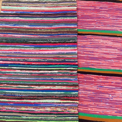 Hyväkuntoiset, pestyt räsymatot. Pituudet vaihtelee, pisimmät matot 320cm ja 460cm.