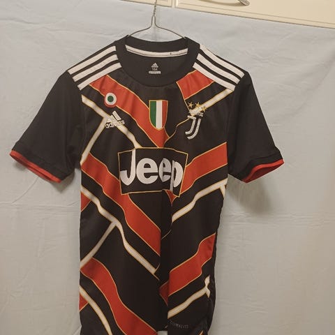 Lasten unisex-jalkapallopaita, jossa selässä nimi Messi ja numero 10. Paita on musta vaaleanpunaisilla yksityiskohdilla. Koko on noin 150 cm.