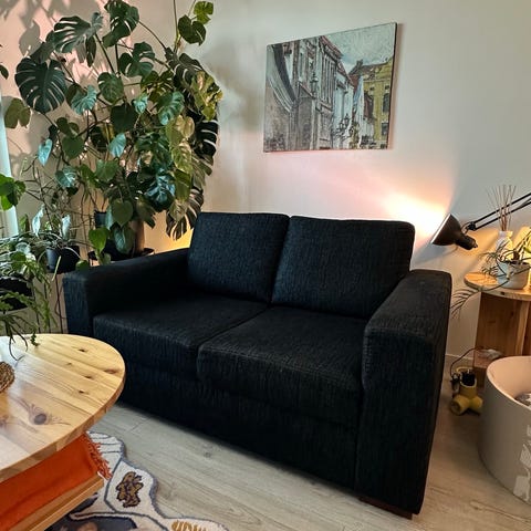 Myydään vaaleanharmaa 3-istuttava sohva.
