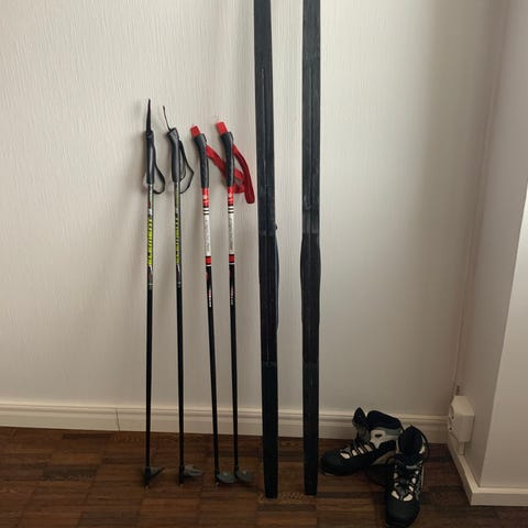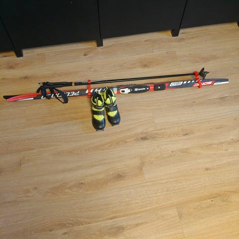 Lasten laskettelupaketti. Sukset 140cm, monot 36 ja sauvat 100cm