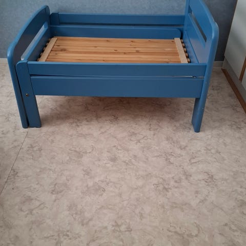 Sänky on hyvässä kunnossa. Joitain pieniä naarmuja, joista selvästi suurin näkyy toisessa kuvassa.