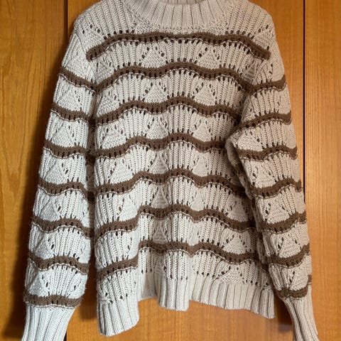 Saint Tropez neulepaita, koko XL. Kirjava, sahalaitakuvioinen neulos neutraaleissa sävyissä. Materiaali 60 % puuvillaa ja 40 % viskoosia. Pitkähihainen malli, jossa pyöreä pääntie ja pieni rintatasku. Sopii arkipukeutumiseen ja kerrospukeutumiseen naiselle. Vastaa kokoa L