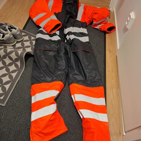 Käyttämätön bluewear miesten talvihaalari kokoa xl. Musta, keltaiset tehosteet ja muutama heijastin.