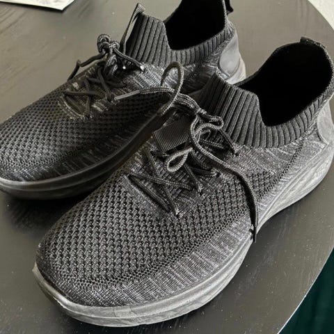 Lenkkarit, koko 48. Väri musta, vaalea pohja. Päällinen verkkomateriaalia ja synteettistä materiaalia, nauhakiinnitys. Sopivat arkeen ja kevyeen liikuntaan. Pohjassa kuvioitu kumipohja, joka antaa pitoa kävellessä.