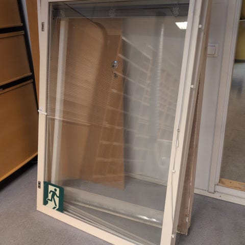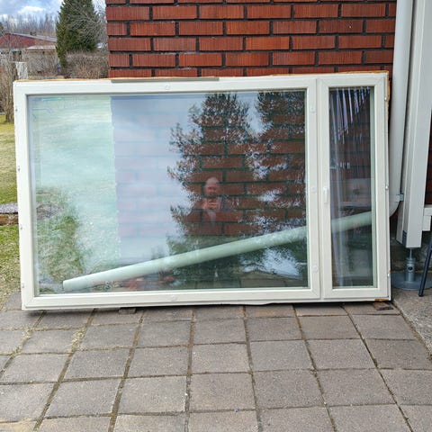Erikokoisia ikkunoita, osaan löytyy vielä karmitkin irrallaan.
