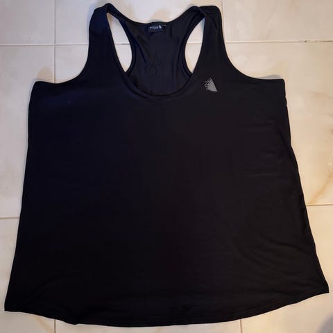 Kerran testattu Future urheilutoppi naisille, koko XL. Topissa on monivärinen punasävyinen kuosi ja tummempi resori helmassa. Selässä on risteävät, ohuet olkaimet.