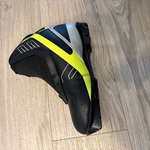 Snow Storm 799 hiihtomonot, koko 37. Väri musta–keltainen harmailla yksityiskohdilla. Monossa on nauhojen päälle tuleva vetoketjullinen suojaläppä ja karkea kumipohja maastohiihtoon. Sopii NNN-siteisiin (pohjassa NNN-merkintä).