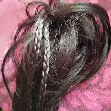 Harmaa hiuslisäke, jossa on muovinen hiusklipsi kiinnitystä varten. Hiuslisäke on valmiiksi muotoiltu ja sopii käytettäväksi oman kampauksen tuuhentamiseen tai ponnarin ja nutturan täydentämiseen. Materiaali on synteettistä kuituhiusta. Klipsi kiinnitetään hiuksiin puristamalla se auki ja sulkemalla se hiusten ympärille.