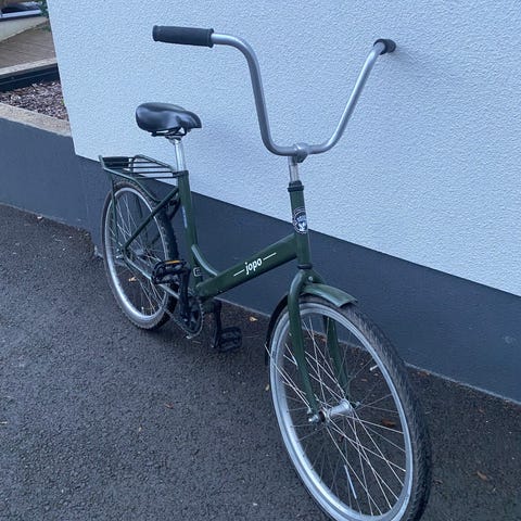 Helkama kaupunkipyörä 24" renkailla. Sisällyttää runkolukon avaimilla. Kaikki toimii hyvin, renkaatkin juuri huolletut, ainoastaan satulassa repeämiä.