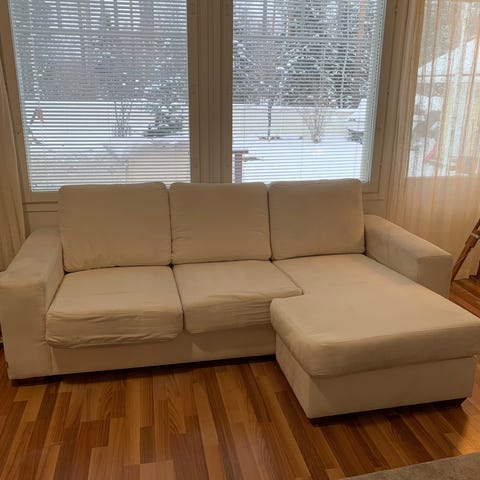 Leveys 295cm (pidempi puoli) x 230cm (divaani)