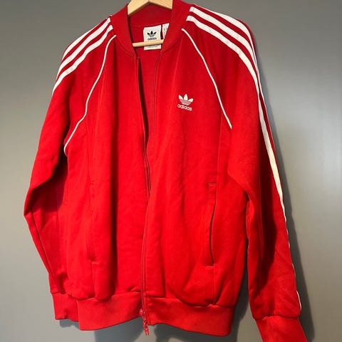 Puma miesten verkkatakki koossa M. Punainen takki, jossa valkoiset raidat hihoissa ja musta Puma-logo rinnassa ja toisessa hihassa. Vetoketjukiinnitys edessä ja korkea kaulus. Materiaalina kevyt ja sileäpintainen verkkakankaan tyyppinen polyesteri. Sopii arkeen ja vapaa-ajan liikuntaan.Pieni tahra olkapäällä oikealla,en ole koettanut puhdistaa!